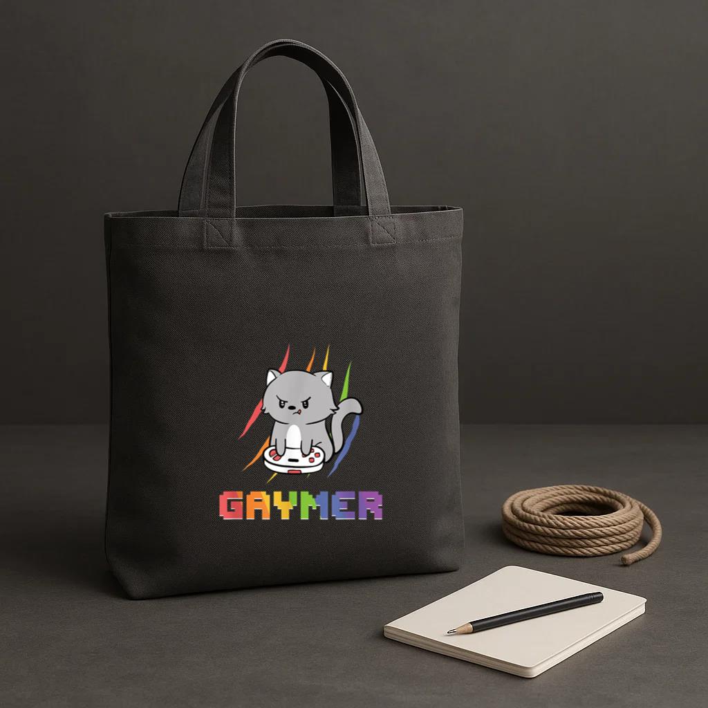 Chic, durable, and reusable, this Gaming Cat Gaymer Video Game LGBT Pride Tote Canvas Bag canvas tote bag is your daily go-to or a thoughtful gift for any occasion.