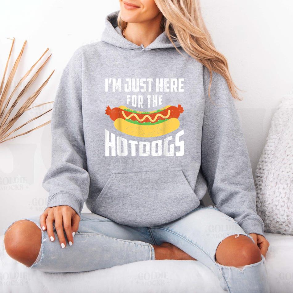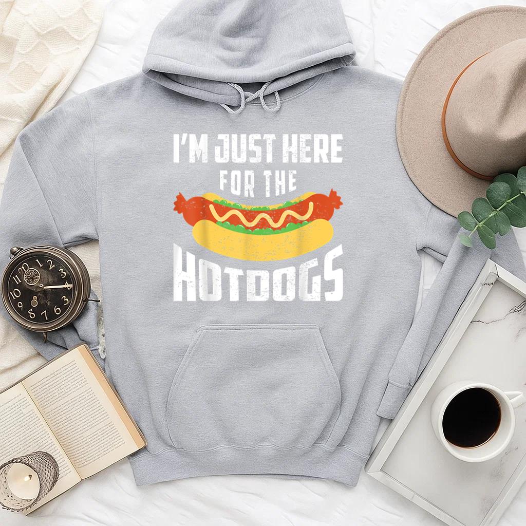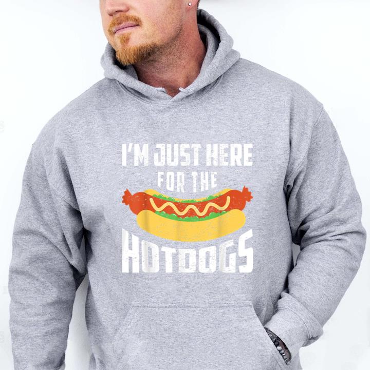 The Hotdog Im Just Here For The Hot Dogs Hoodie hoodie combines comfort warmth and style for a go anywhere piece that works in any season. Soft inside and durable outside it is perfect for layering or lounging