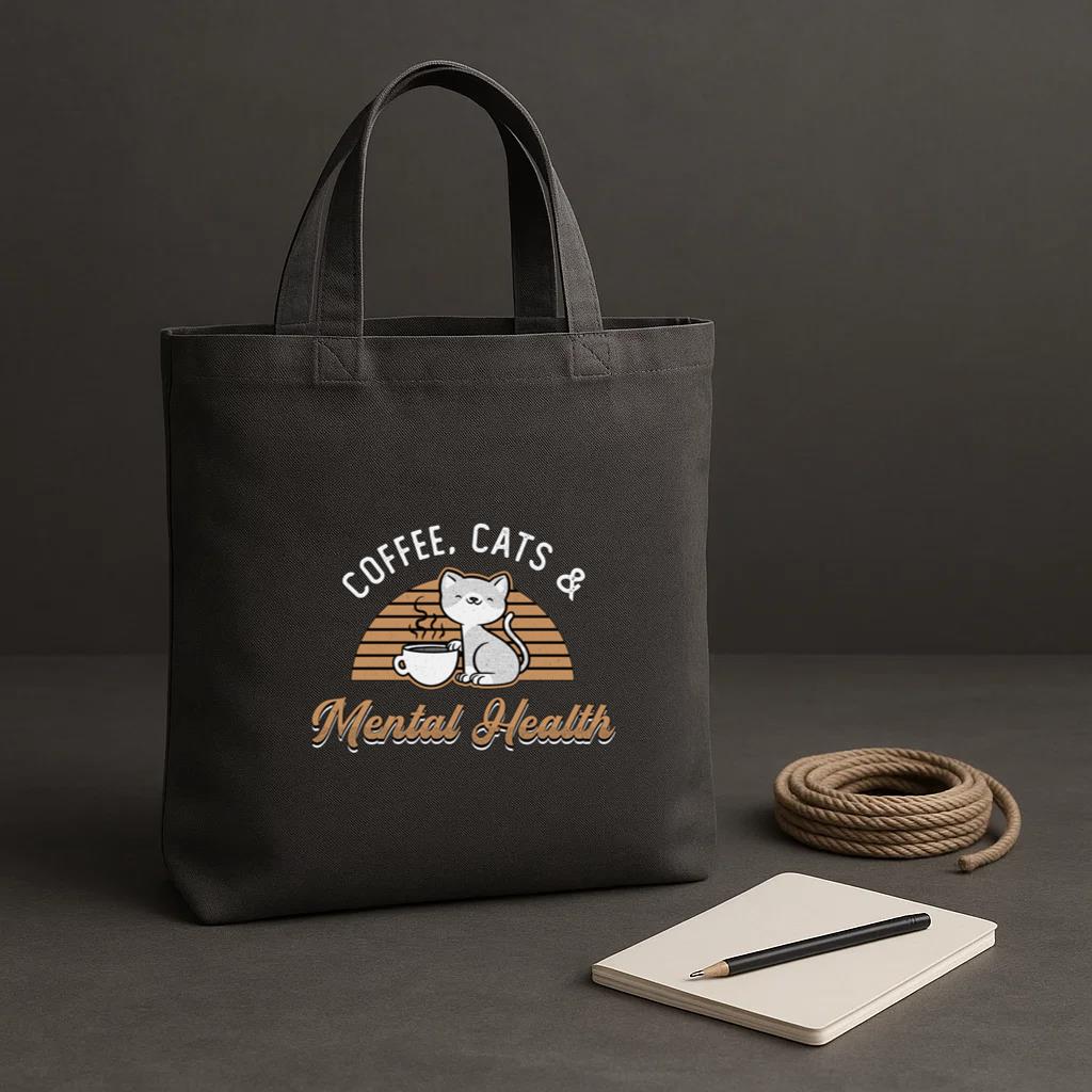Chic, durable, and reusable, this Mental Health Coffee Cats Tote Canvas Bag canvas tote bag is your daily go-to or a thoughtful gift for any occasion.