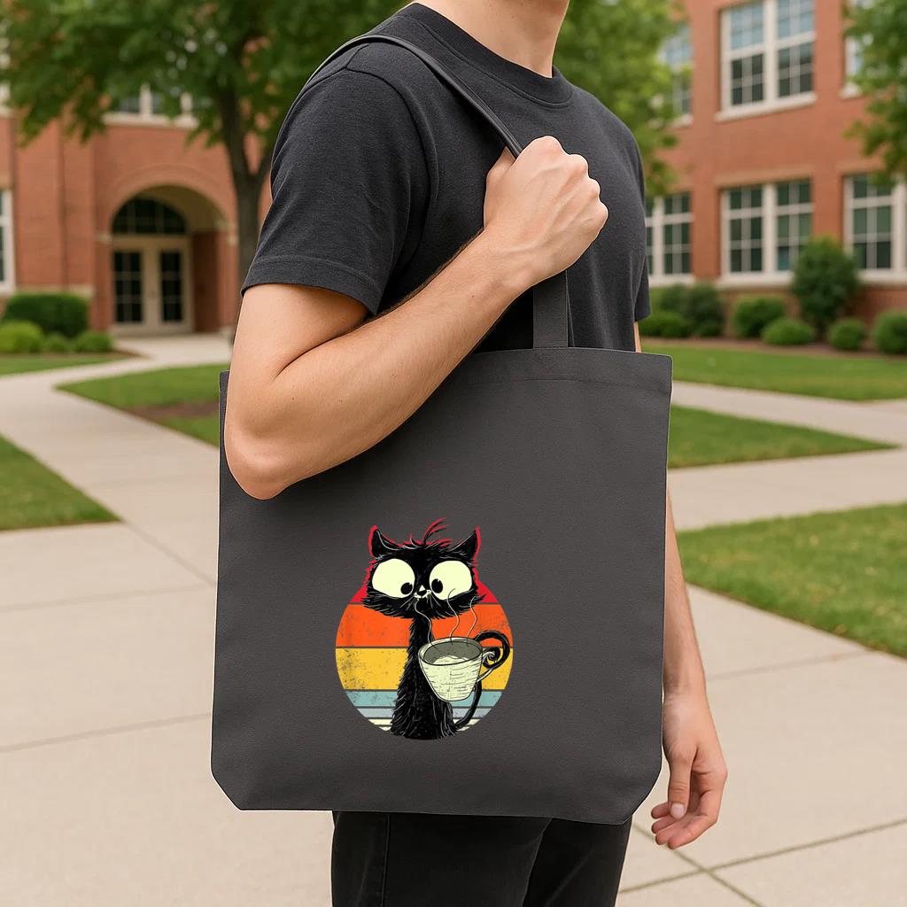 Chic, durable, and reusable, this Vintage Black Cat Retro Coffee Tote Canvas Bag canvas tote bag is your daily go-to or a thoughtful gift for any occasion.